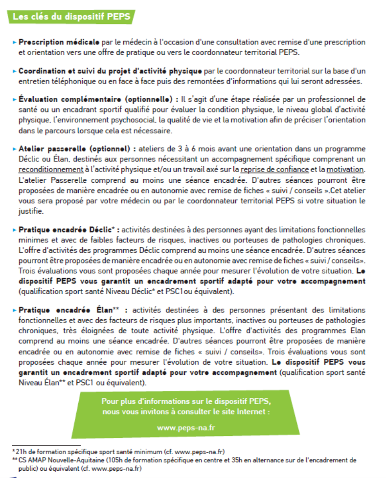 Le dispositif PEPS vous accompagne dans le choix et la pratique régulière d'une activité adaptée à votre situation et à vos envies.