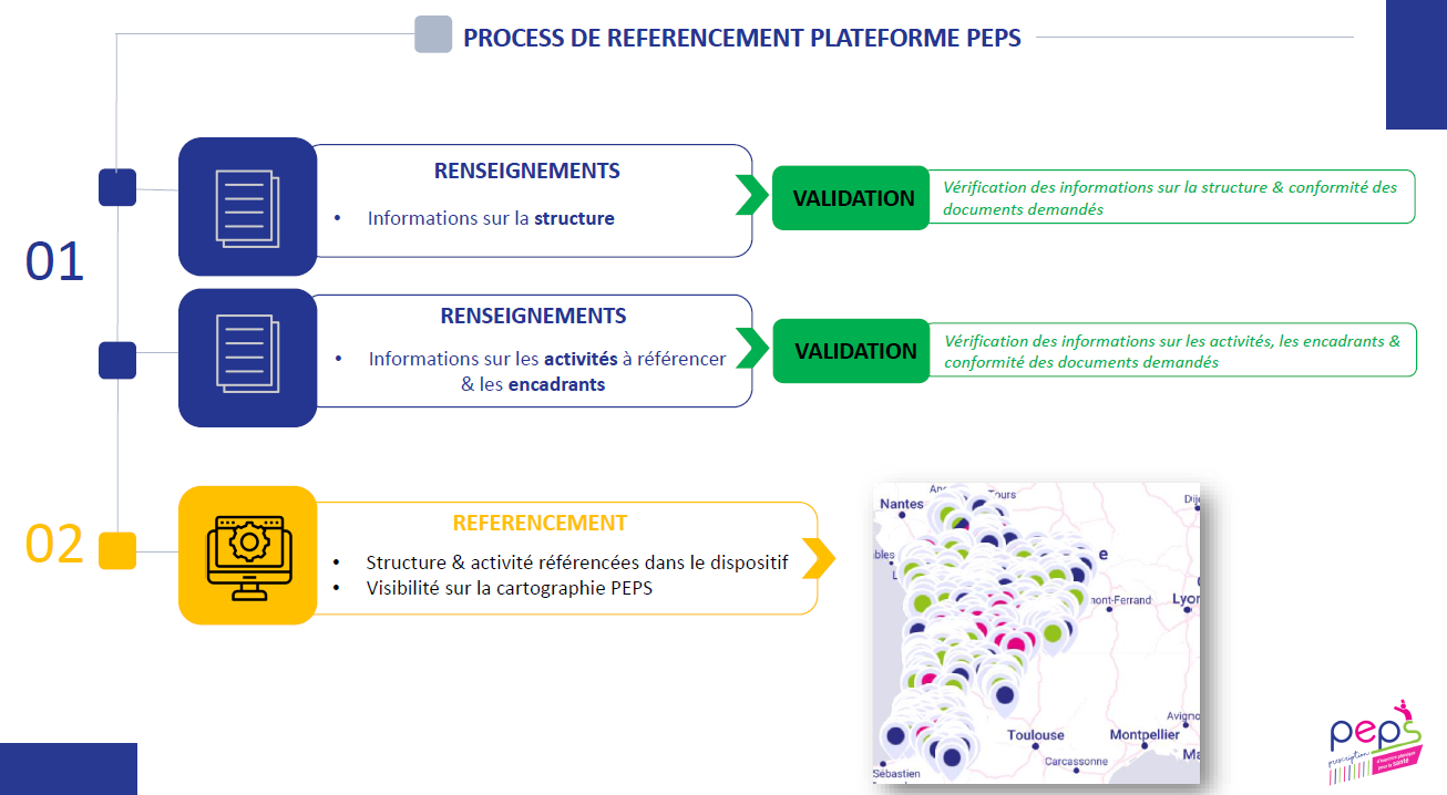 Inscrivez votre structure et ses activités dans les programmes PEPS, votre offre sera ainsi identifiée et valorisée auprès des médecins et des bénéficiaires de prescription d'activités physiques.